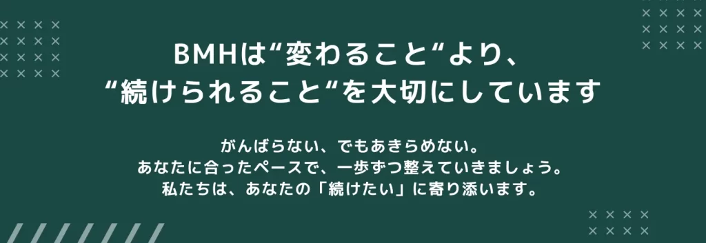 BMH PERSONAL GYMには、運動が苦手な方やジムに苦手意識がある方が多く通っています。