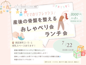 会場は西区になりますが、ママさん向けの骨盤矯正ストレッチ会を行います✨